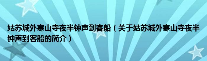 本文關于姑蘇城外寒山寺夜半鐘聲到客船的簡介就講解完畢,希望對大家有所幫助。