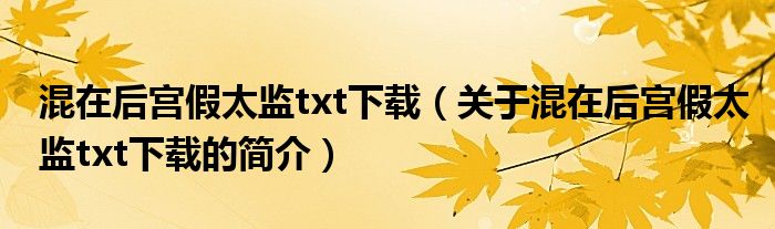 本文關于混在后宮假太監txt下載的簡介就講解完畢,希望對大家有所幫助。