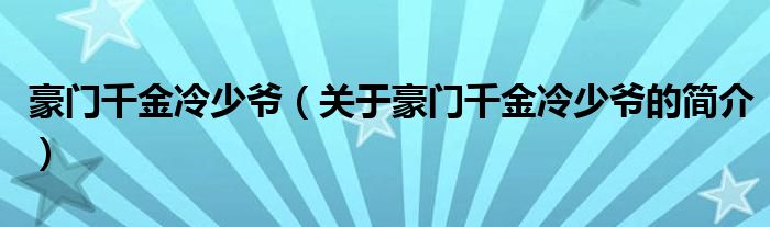 本文關(guān)于豪門千金冷少爺?shù)暮喗榫椭v解完畢,希望對(duì)大家有所幫助。