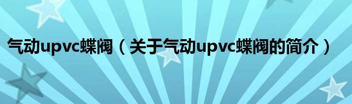 本文關于氣動upvc蝶閥的簡介就講解完畢,希望對大家有所幫助。