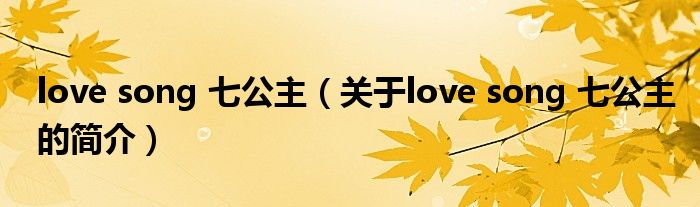 本文關(guān)于love song 七公主的簡介就講解完畢,希望對大家有所幫助。