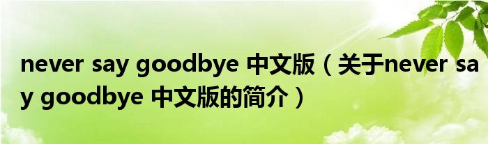本文關(guān)于never say goodbye 中文版的簡(jiǎn)介就講解完畢,希望對(duì)大家有所幫助。