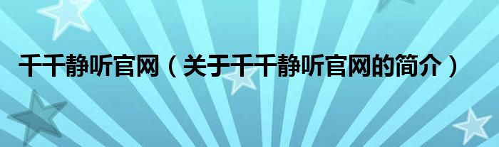 大家好,千千靜聽官網,關于千千靜聽官網的簡介很多人還不知道,現在讓我們一起來看看吧!