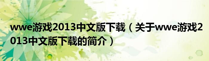 本文關于wwe游戲2013中文版下載的簡介就講解完畢,希望對大家有所幫助。