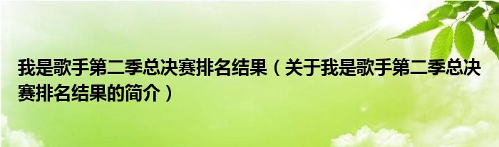 本文關于我是歌手第二季總決賽排名結果的簡介就講解完畢,希望對大家有所幫助。