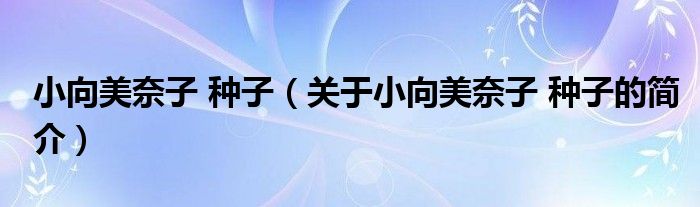 本文關于小向美奈子 種子的簡介就講解完畢,希望對大家有所幫助。