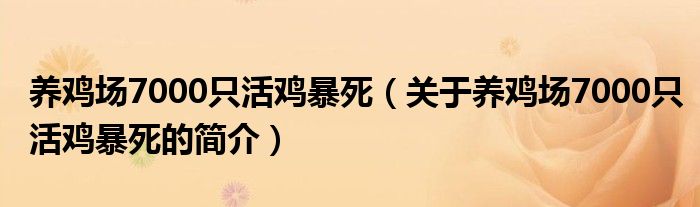 本文關(guān)于養(yǎng)雞場7000只活雞暴死的簡介就講解完畢,希望對大家有所幫助。