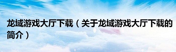 本文關于龍域游戲大廳下載的簡介就講解完畢,希望對大家有所幫助。