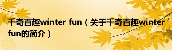 大家好,千奇百趣winter fun,關于千奇百趣winter fun的簡介很多人還不知道,現在讓我們一起來看看吧!