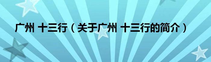 大家好,廣州 十三行,關于廣州 十三行的簡介很多人還不知道,現在讓我們一起來看看吧!