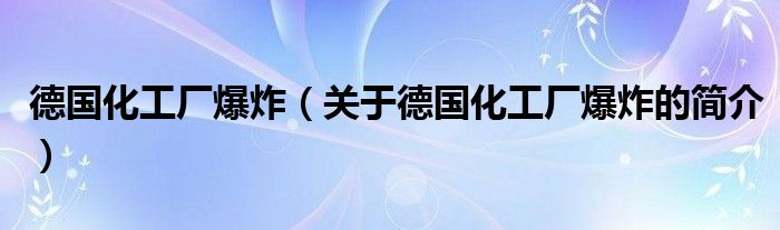 大家好,德國化工廠爆炸,關于德國化工廠爆炸的簡介很多人還不知道,現在讓我們一起來看看吧!