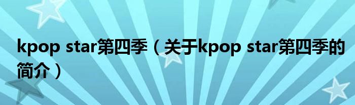 大家好,kpop star第四季,關(guān)于kpop star第四季的簡(jiǎn)介很多人還不知道,現(xiàn)在讓我們一起來(lái)看看吧!