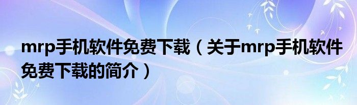 本文關于mrp手機軟件免費下載的簡介就講解完畢,希望對大家有所幫助。