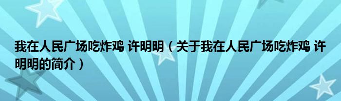 本文關于我在人民廣場吃炸雞 許明明的簡介就講解完畢,希望對大家有所幫助。