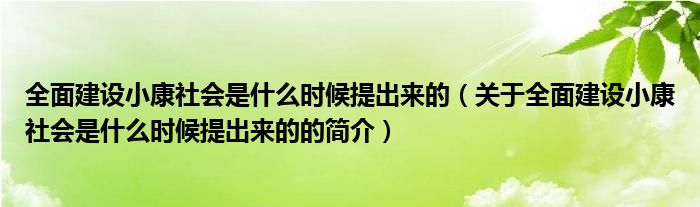 本文關(guān)于全面建設(shè)小康社會(huì)是什么時(shí)候提出來(lái)的的簡(jiǎn)介就講解完畢,希望對(duì)大家有所幫助。