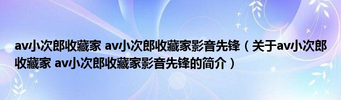 本文關(guān)于av小次郎收藏家 av小次郎收藏家影音先鋒的簡介就講解完畢,希望對大家有所幫助。