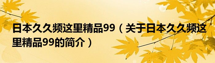 本文關于日本久久頻這里精品99的簡介就講解完畢,希望對大家有所幫助。