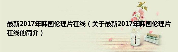 本文關(guān)于最新2017年韓國倫理片在線的簡介就講解完畢,希望對(duì)大家有所幫助。