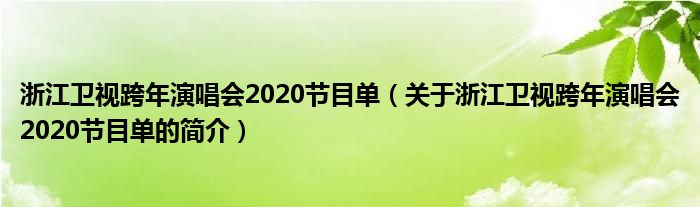 本文關于浙江衛視跨年演唱會2020節目單的簡介就講解完畢,希望對大家有所幫助。