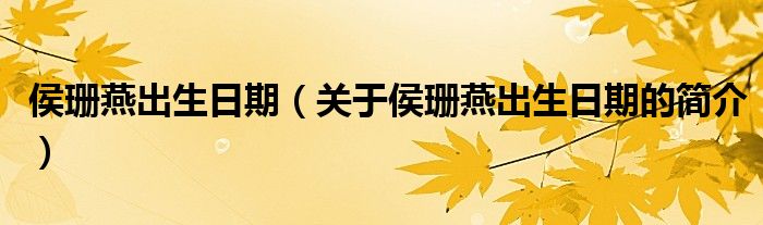 本文關于侯珊燕出生日期的簡介就講解完畢,希望對大家有所幫助。