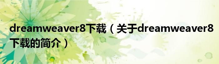 大家好,dreamweaver8下載,關于dreamweaver8下載的簡介很多人還不知道,現在讓我們一起來看看吧!