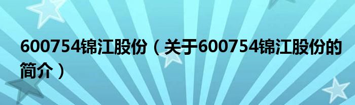 大家好,600754錦江股份,關于600754錦江股份的簡介很多人還不知道,現在讓我們一起來看看吧!