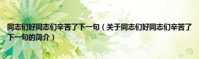 本文關于同志們好同志們辛苦了下一句的簡介就講解完畢,希望對大家有所幫助。