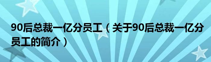 大家好,90后總裁一億分員工,關于90后總裁一億分員工的簡介很多人還不知道,現在讓我們一起來看看吧!