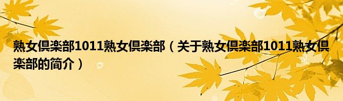 本文關于熟女倶楽部1011熟女倶楽部的簡介就講解完畢,希望對大家有所幫助。