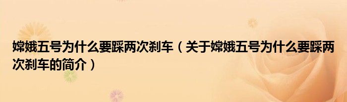 大家好,嫦娥五號為什么要踩兩次剎車,關于嫦娥五號為什么要踩兩次剎車的簡介很多人還不知道,現在讓我們一起來看看吧!