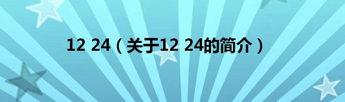大家好,12 24,關(guān)于12 24的簡(jiǎn)介很多人還不知道,現(xiàn)在讓我們一起來看看吧!