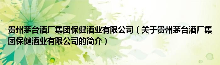 本文關于貴州茅臺酒廠集團保健酒業有限公司的簡介就講解完畢,希望對大家有所幫助。