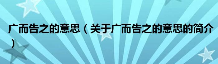 本文關于廣而告之的意思的簡介就講解完畢,希望對大家有所幫助。