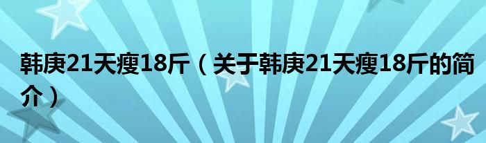 本文關(guān)于韓庚21天瘦18斤的簡介就講解完畢,希望對(duì)大家有所幫助。