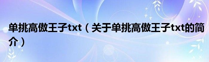 本文關于單挑高傲王子txt的簡介就講解完畢,希望對大家有所幫助。