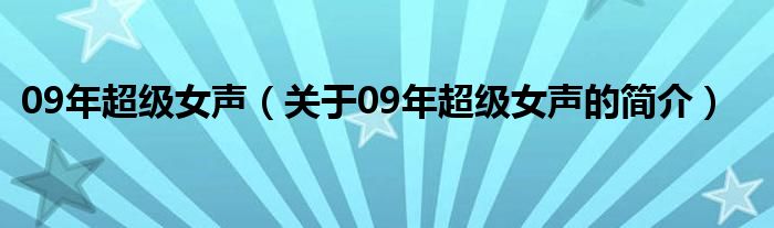 大家好,09年超級女聲,關于09年超級女聲的簡介很多人還不知道,現在讓我們一起來看看吧!