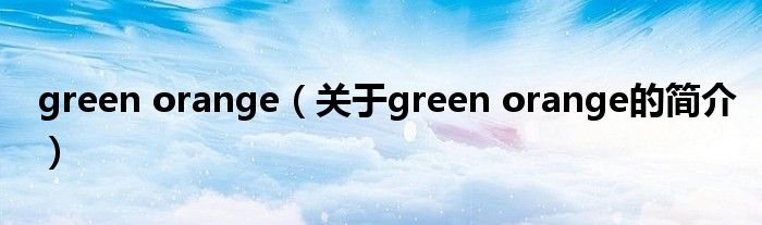 大家好,green orange,關于green orange的簡介很多人還不知道,現在讓我們一起來看看吧!
