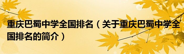 本文關(guān)于重慶巴蜀中學(xué)全國排名的簡介就講解完畢,希望對大家有所幫助。