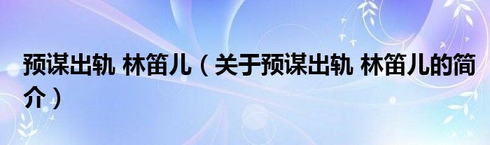 大家好,預謀出軌 林笛兒,關于預謀出軌 林笛兒的簡介很多人還不知道,現在讓我們一起來看看吧!