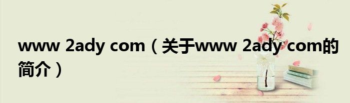 大家好,www 2ady com,關于www 2ady com的簡介很多人還不知道,現在讓我們一起來看看吧!