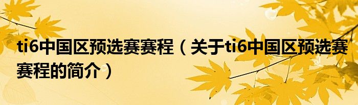 本文關(guān)于ti6中國(guó)區(qū)預(yù)選賽賽程的簡(jiǎn)介就講解完畢,希望對(duì)大家有所幫助。