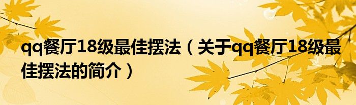 本文關于qq餐廳18級最佳擺法的簡介就講解完畢,希望對大家有所幫助。