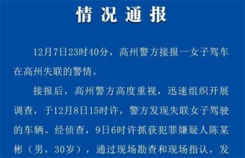 起訴書上面顯示,在2022年12月7日,受害人阿麗被陳某彬騙到高州市家中,之后殺人并且奸污尸體,之后銷毀了證據,比如清洗現場、丟棄兇器和行車記錄儀等等,當時這件事也引起了很多人的注意,12月7日上午阿麗前往高州送貨,最后她的車在高州筆架山被找到,卻沒有發現人,家屬選擇了報警,到12月9日6時,高州市公安局抓獲犯罪嫌疑人陳某彬,通過對現場的勘察以及指認,發現了失聯女子阿麗的尸體,之后發布了情況通報,對案件進行了進一步的偵查。