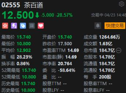 4月23日茶百道正式登陸港交所成為第二家新茶飲上市公司,即便有這種背景加持,茶百道也難擋破發(fā)之勢,發(fā)行市值超200億港元,但是開盤之后就遭遇滑鐵盧,跌幅超過了30%,面對這一幕不由得讓人感到唏噓。