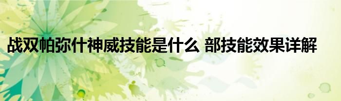戰(zhàn)雙帕彌什神威技能是什么 部技能效果詳解