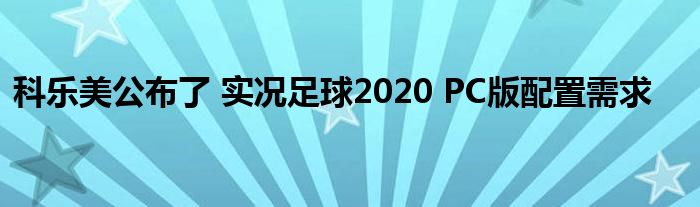 《實況足球2020》PC配置需求公布 最低僅需GTX 670