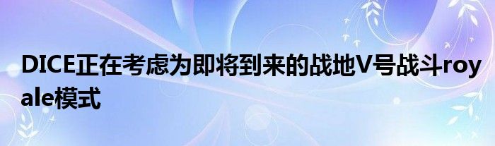 EA DICE正在測試潛在的戰斗royale模式為他們即將到來的標題戰場V.