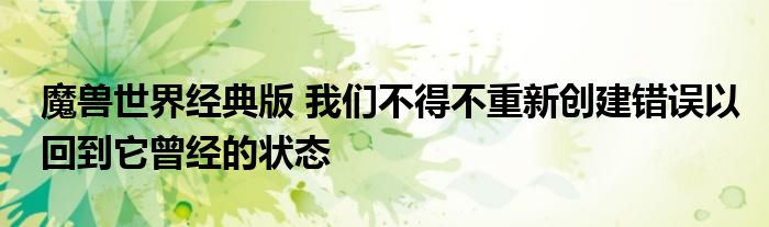 Ion Hazzikostas:因為我們終于找到了辦法。如你所知,BlizzCon和其他地方已經提出了很長時間的問題,“不”或“我們不能做到這一點”的回答從來就不是我們的哲學問題,也不是頑固的問題。簡單地說,每次我們回顧一下將原始的魔獸世界帶入現代時所需要的東西,障礙似乎是不可克服的。