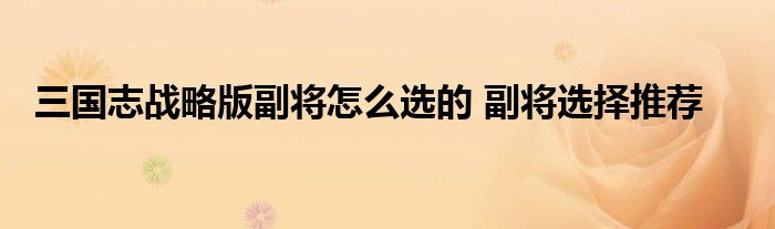 在三國志戰略版手游中玩家可以選擇副將,那么副將選誰好呢,下面就讓小編來告訴大家三國志戰略版副將怎么選的詳細攻略介紹,感興趣的不要錯過哦。
