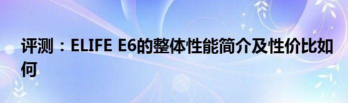 簡單的說一下關于ELIFE E6的整體性能簡介及性價比如何這方面的訊息,不少朋友對于ELIFE E6的整體性能簡介及性價比如何這方面的信息頗感興趣的。小編今天就為此整理一些相關的訊息,希望對有需要的朋友有所幫助。